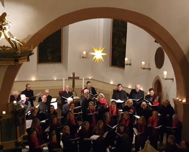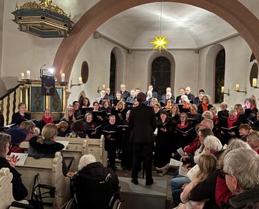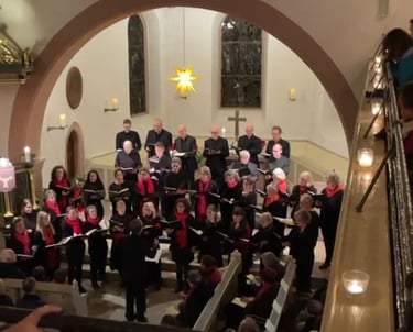 "Mit einem sehr stimmungsvollen weihnachtlichen Lichterkonzert hat sich der Main-Taunus-Kammerchor nach drei Jahren pandemiebedingter Pause in das Bad Sodener Musikleben zurückgemeldet. Geleitet wurden die Sängerinnen und Sänger von ihrem neuen Chorleiter Julian Mörth, dem Nachfolger des im vergangenen Jahr viel zu früh verstorbenen Stefan Claas. Die vorweihnachtlichen Konzerte des Kammerchors sind in Bad Soden mittlerweile zu einer kleinen Tradition geworden und der Chor hatte auch dieses Mal ganz unterschiedliche musikalische Welten in seinem Programm vereint."