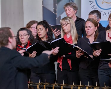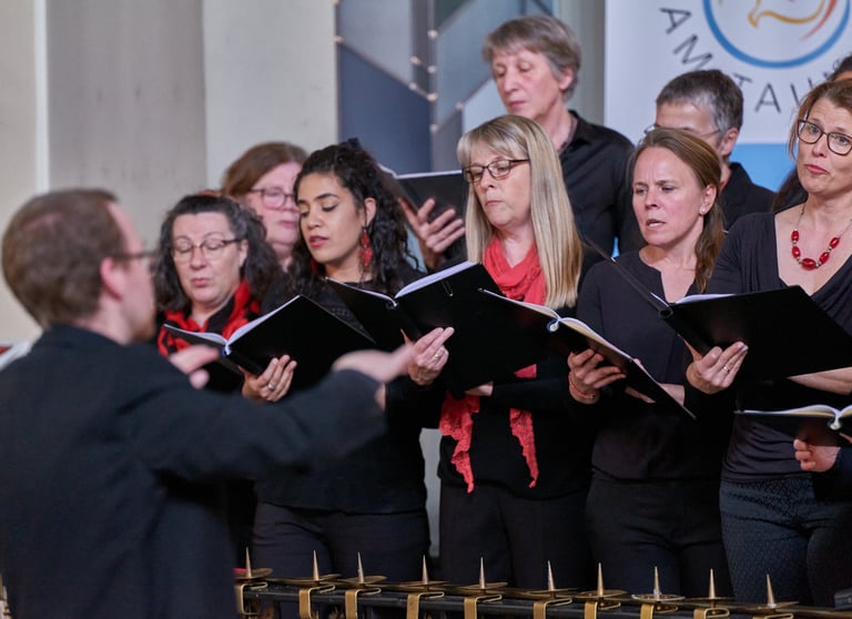 Im April und Mai 2024 haben wir drei große Konzerte mit Streichorchester veranstaltet. Auf dem Programm standen die wunderschöne Sunrise Mass von Ola Gjeilo und die Neukomposition "Friedenslied" unseres Chorleiters Julian Mörth, die er uns extra für diese Konzerte geschrieben hat.