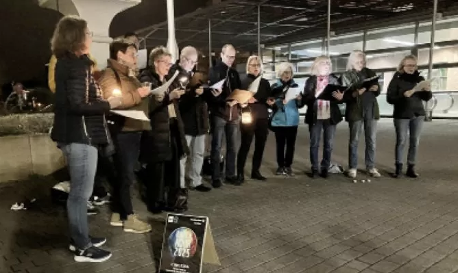 Beim diesjährigen Earth Day unter dem Motto "Licht aus, Stimme an" hat sich eine kleine Gruppe des Main-Taunus-Kammerchores zusammengefunden und ein paar Stücke zum Besten gegeben.