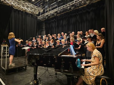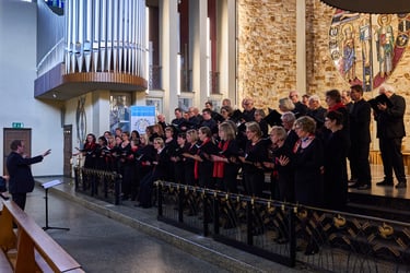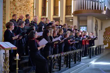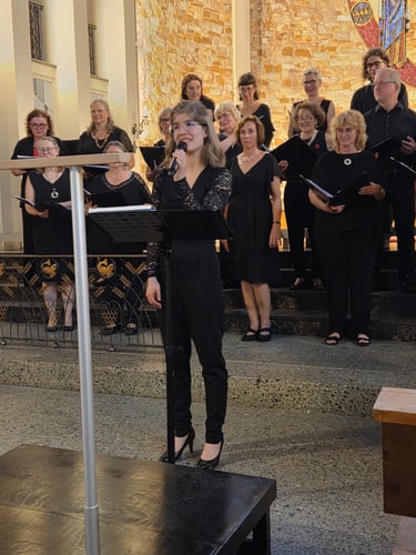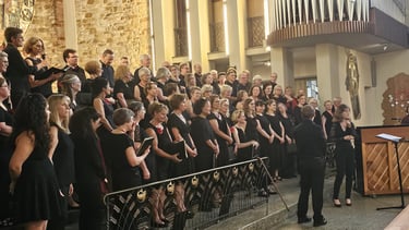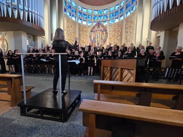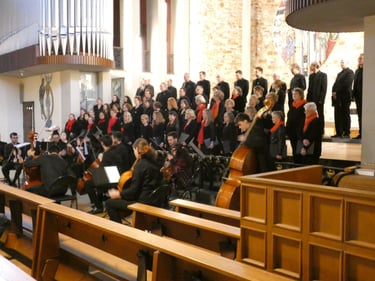 Im April und Mai 2024 haben wir nach langer, intensiver Planung endlich mal wieder Konzerte mit Orchester auf die Beine gestellt. Auf dem Programm standen die wunderschöne Sunrise Mass von Ola Gjeilo und die Neukomposition "Friedenslied" unseres Chorleiters Julian Mörth, die er uns extra für diese Konzerte geschrieben hat.