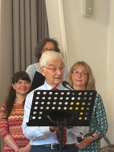 Wir bedanken uns bei allen, die unsere Jubiläumsfeier mit unterhaltsamen Reden zu unserer Chorgeschichte bereichert haben: bei unserer stellvertretenden Vorstandsvorsitzenden Beate Neumeyer, dem Bürgermeister von Bad Soden Frank Blasch, dem Leiter der Musikstiftung Bad Soden Jürgen Frei, unserem ehemaligen Chormitglied Armin und nicht zuletzt unserem aktuellen Chormitglied Jörg Neumeyer, der sehr energetisch durch unser Programm geführt hat.