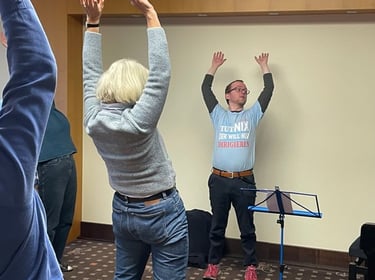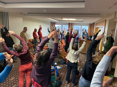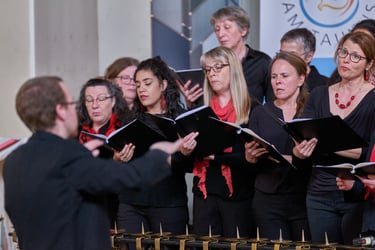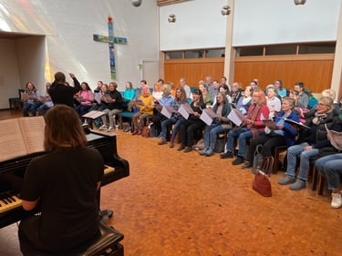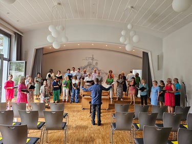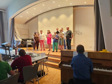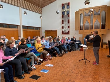 Im April 2024 hatten wir einen Probentag in Schwalbach für unsere anstehenden Sunrise Mass-Konzerte, bei denen wir zum ersten Mal zusammen mit den Mörth Singers geprobt haben. Es war eine große Freude, mit diesen tollen Sänger:innen zu singen.